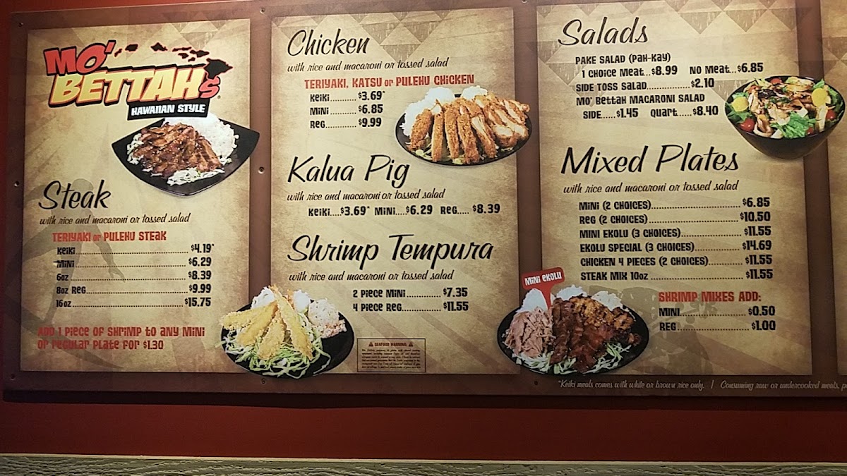 Mo' Bettahs Hawaiian Style Food - Midvale Menu